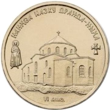 Опис: У центральній частині монети — зображення Успенського собору в Дранді, ліворуч — зображення будівничого собору, візантійського імператора Великого Юстиніана, праворуч — зображення Драндського хреста, у верхній центральній частині монети — напівкруглий напис абхазькою мовою «Нанҳәа иазку Дранда-ныха» (Успенський собор Дранди). Напис під зображенням собору вказує дату будівництва.