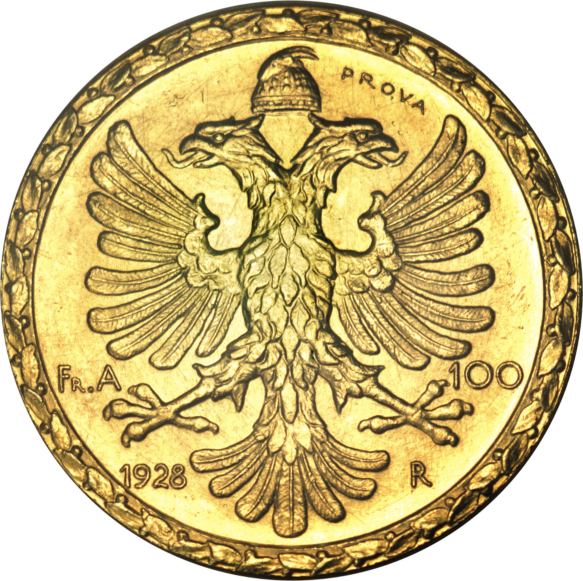 100 франг Арі — Зог I (пробна) 1928 – 1928 Албанія