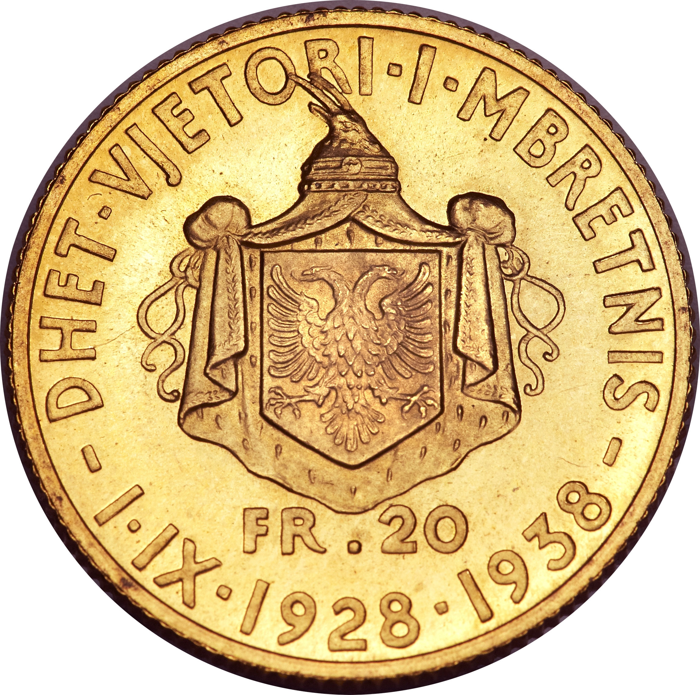 20 франг Арі — Зог I (10-та річниця правління) 1938 – 1938 Албанія