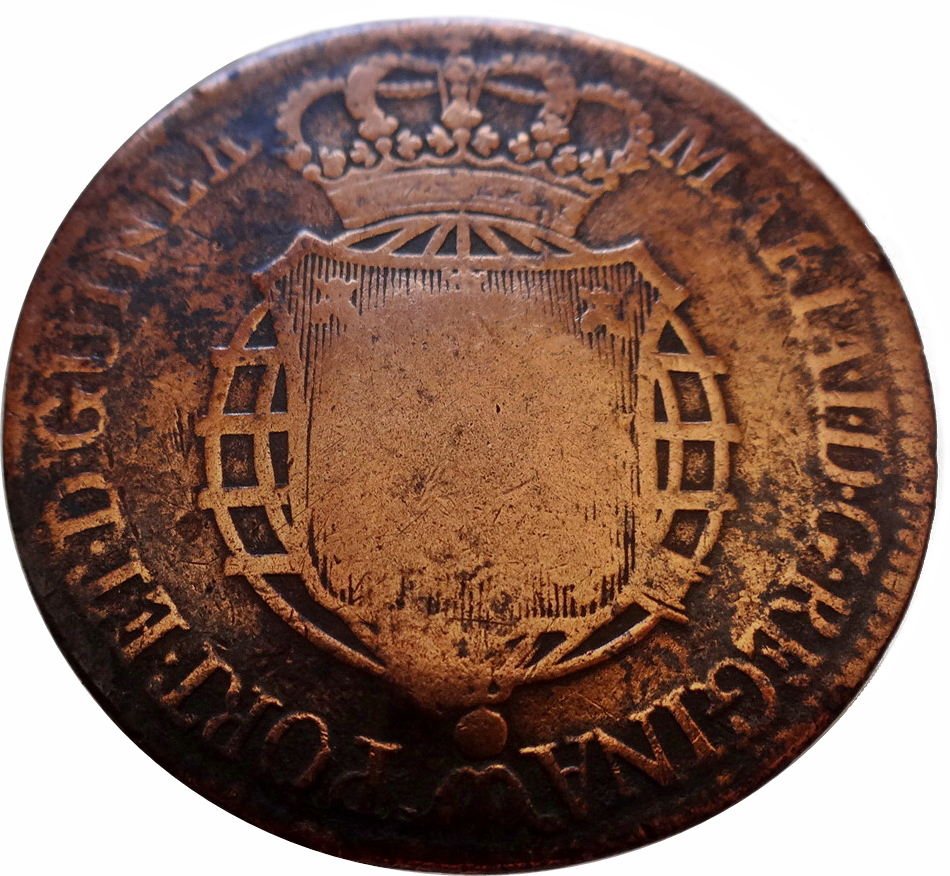 1 макута — Марія II (контрмарка «КОРОНОВАНИЙ ЩИТ» над «½ макута, Марія I») 1837 – 1840 Ангола