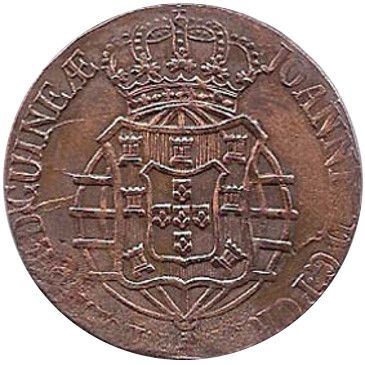 Опис: Контрмарка, що зображує герб Португалії, Едикт від 1 березня 1853 року. Контрмарка подвоює номінальну вартість монети. Тут монета спочатку має номер KM# 46, 1 макута — Жуан VI, тому вартість KM# 54 становить 2 макути.