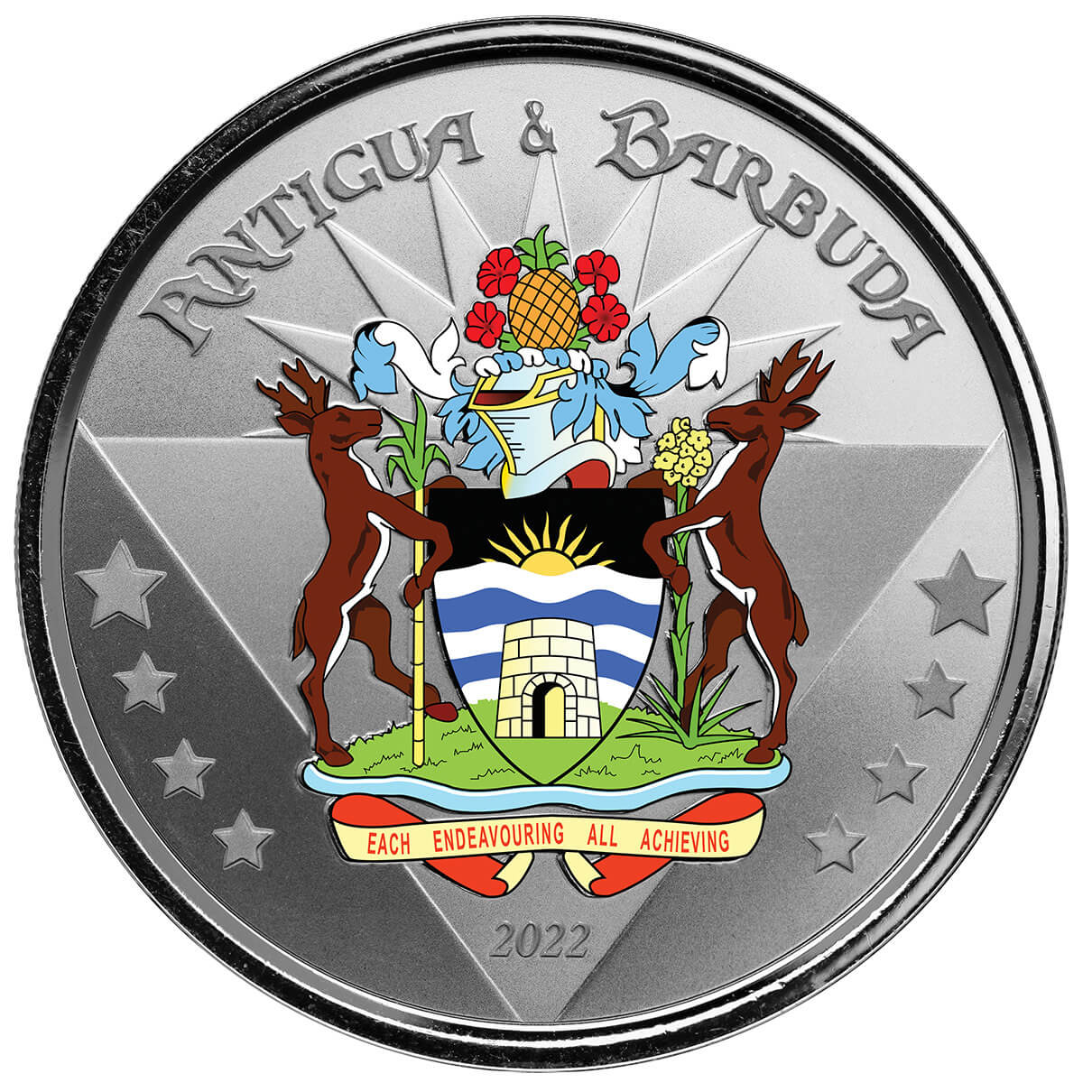 2 долари — Єлизавета II (герб; кольорова) 2022 – 2022 Антигуа і Барбуда