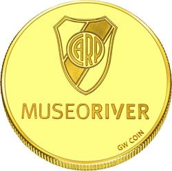 Опис: Версія 2019 року емблеми клубу «Атлетіко Рівер Плейт» з логотипом музею «Рівер» у центрі.