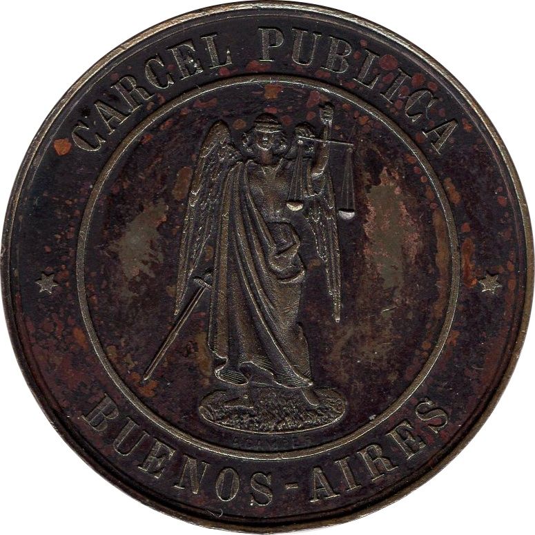 Опис: Фігура стоячої богині справедливості з закритими очима, мечем і вагами