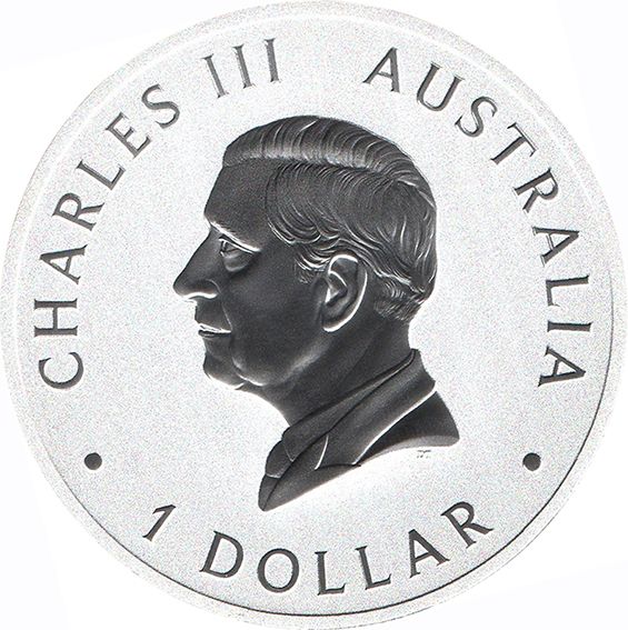 1 долар — Карл III (1-й портрет — австралійський брамбі — кольоровий) 2024 – 2024 Австралія