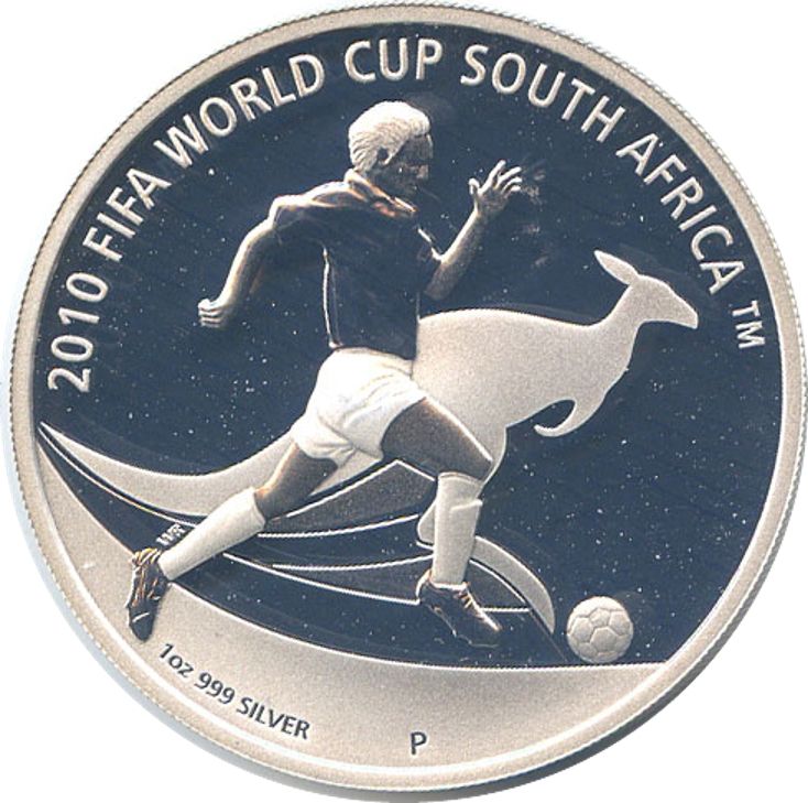 Назва: 1 долар — Єлизавета II (4-й портрет — Чемпіонат світу з футболу 2010 року — срібна монета)