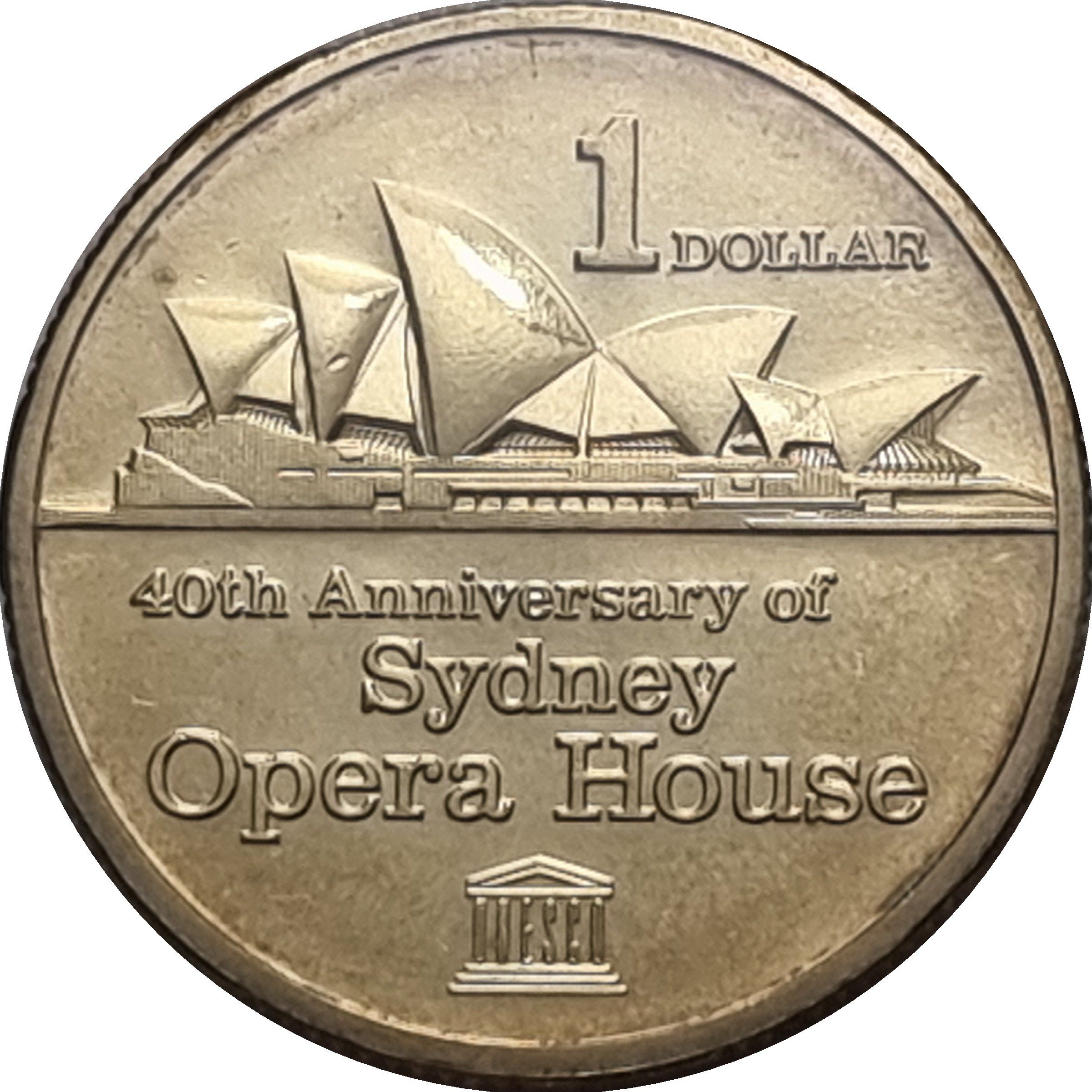 1 долар — Єлизавета II (4-й портрет — 40-річчя Оперного театру в Сіднеї)