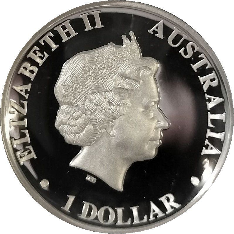 Назва: 1 долар — Єлизавета II (4-й портрет — австралійська кукабарра — пробний високий рельєф)