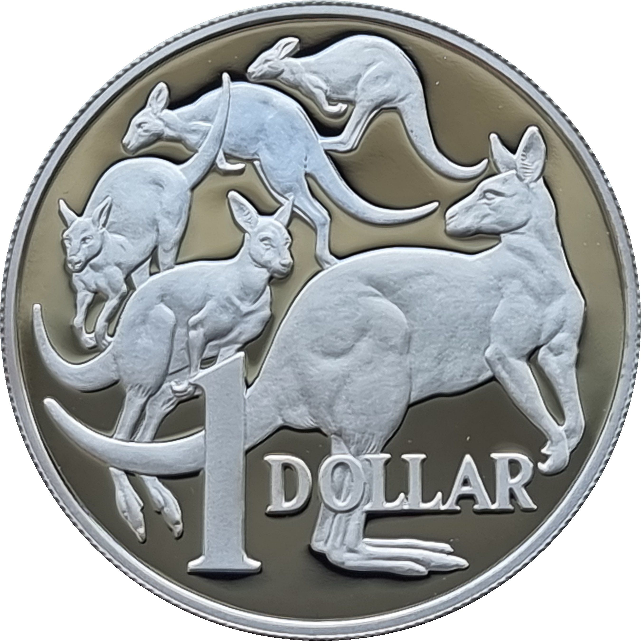 1 долар — Єлизавета II (4-й портрет — Шедеври в сріблі — П'ять кенгуру)