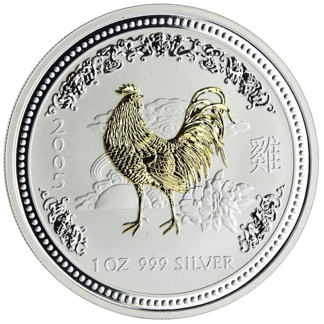Назва: 1 долар — Єлизавета II (4-й портрет — Рік Півня — срібна позолочена монета)