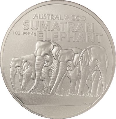 Опис: На монеті зображено чотирьох дорослих суматранських слонів, а також напис «AUSTRALIA ZOO SUMATRAN ELEPHANT» (Австралійський зоопарк Суматранський слон) та вміст і чистоту металу.