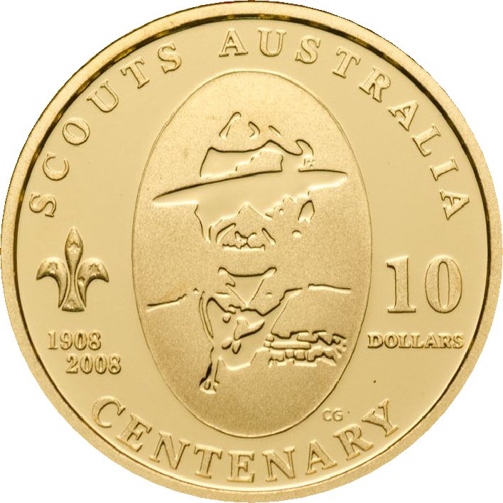 Назва: 10 доларів — Єлизавета II (4-й портрет — Сторіччя скаутів — Золота пробна монета)