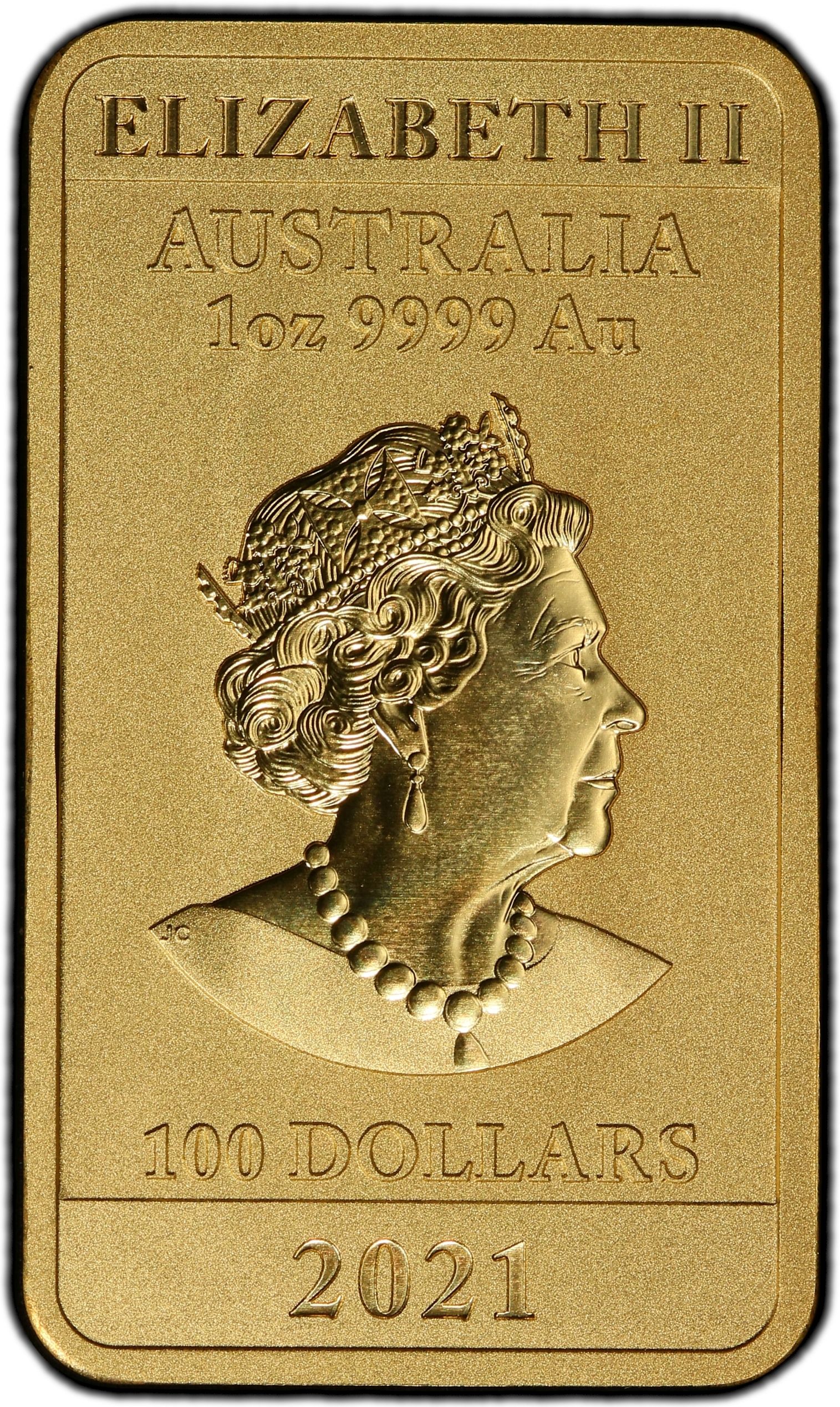 100 доларів — Єлизавета II (6-й портрет — китайський дракон, злиток)