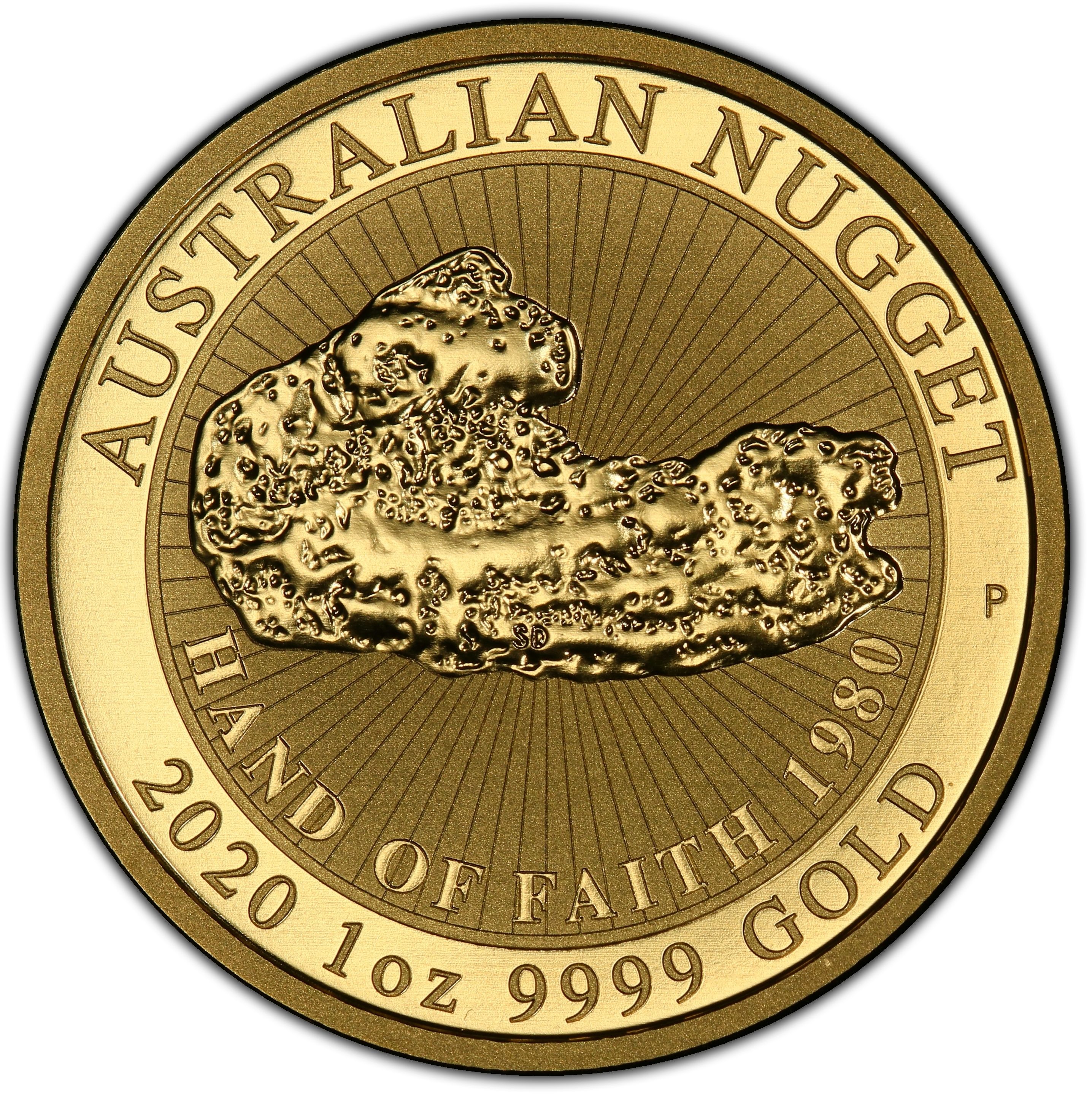 Опис: Знаменитий самородок «Рука віри» на тлі радіальних ліній.