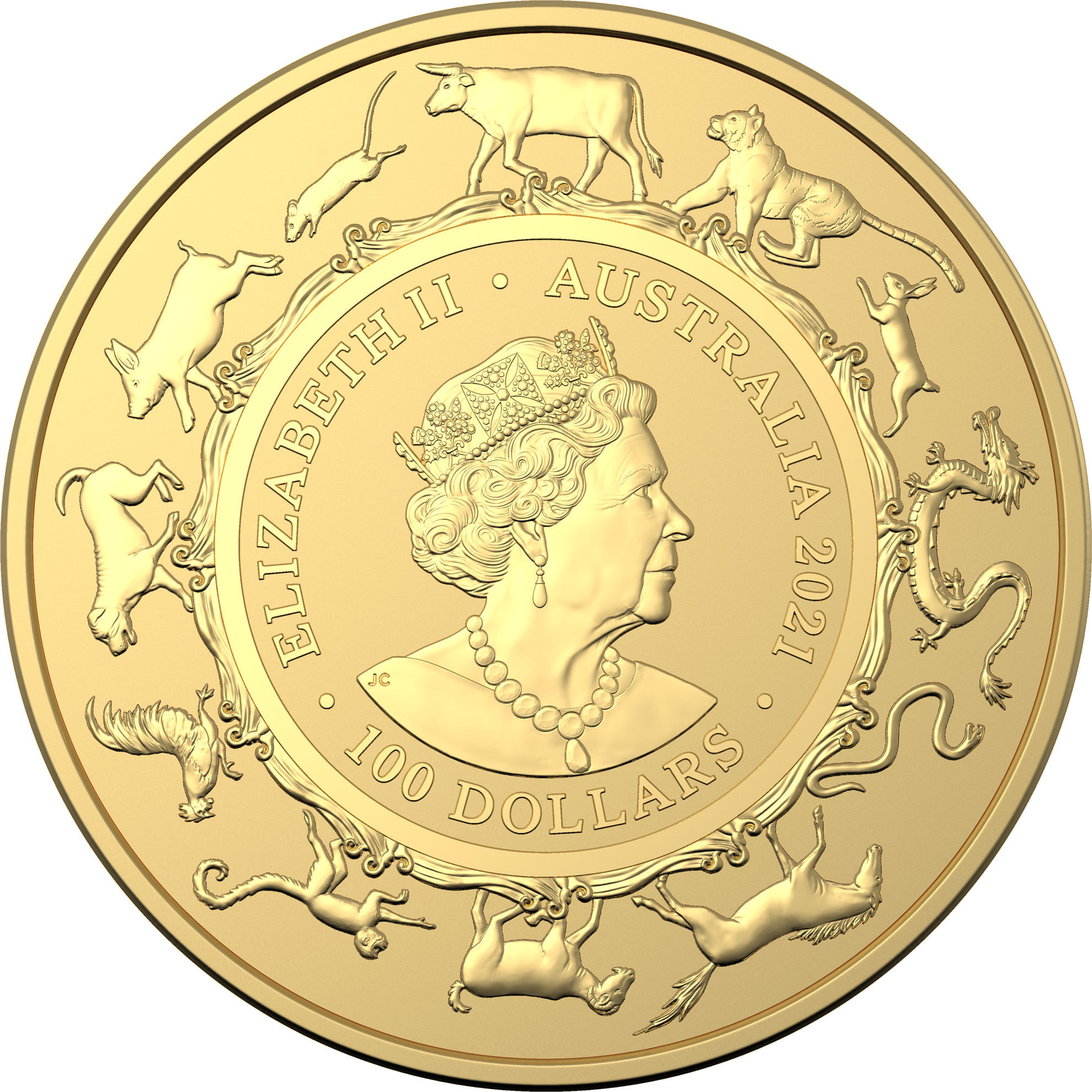 Назва: 100 доларів — Єлизавета II (6-й портрет — Рік Бика — Золота монета)