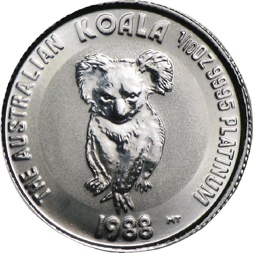15 доларів — Єлизавета II (3-й портрет — Коала — Платина) 1988 – 1989 Австралія