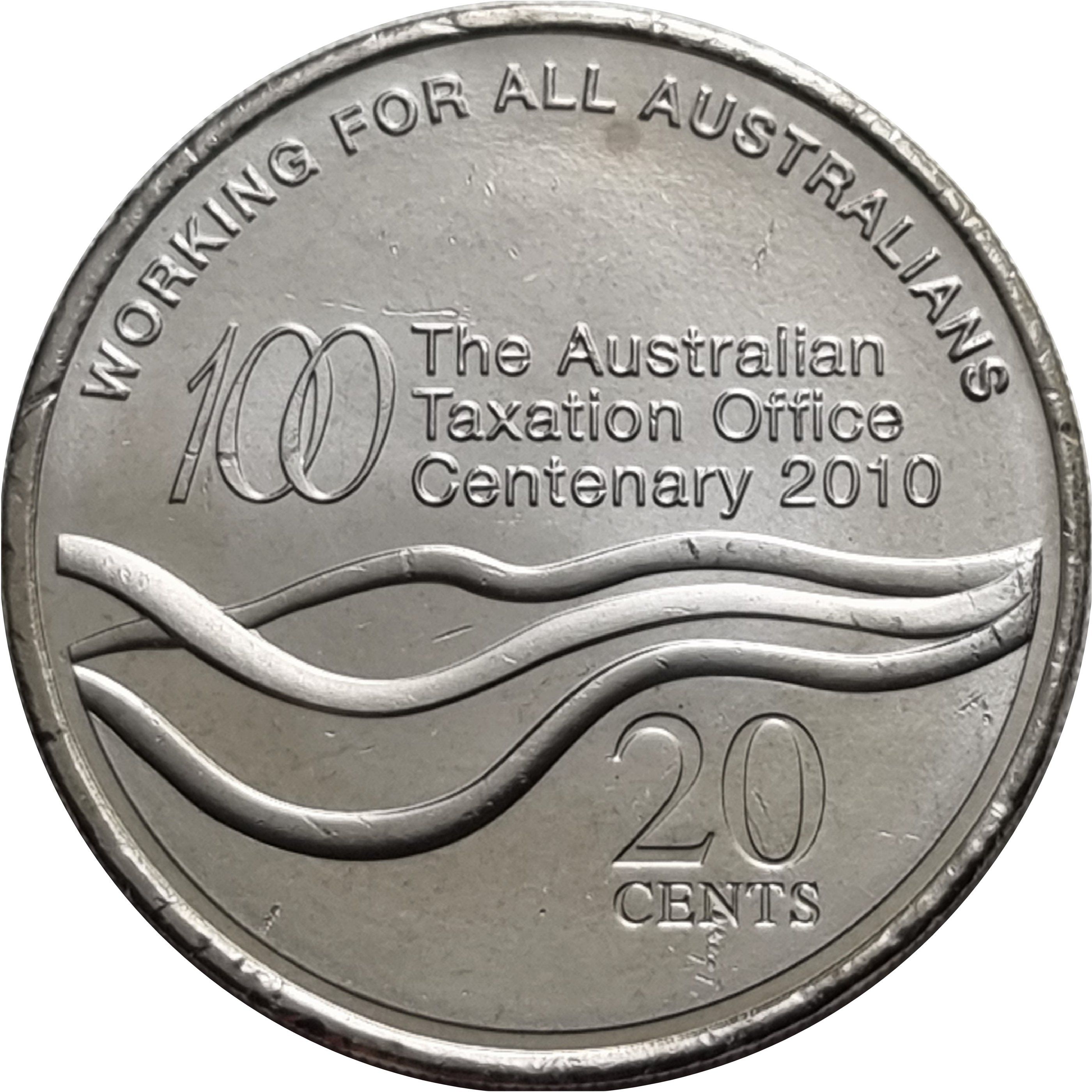 Назва: 20 центів — Єлизавета II (4-й портрет — 100-річчя податкової служби)
