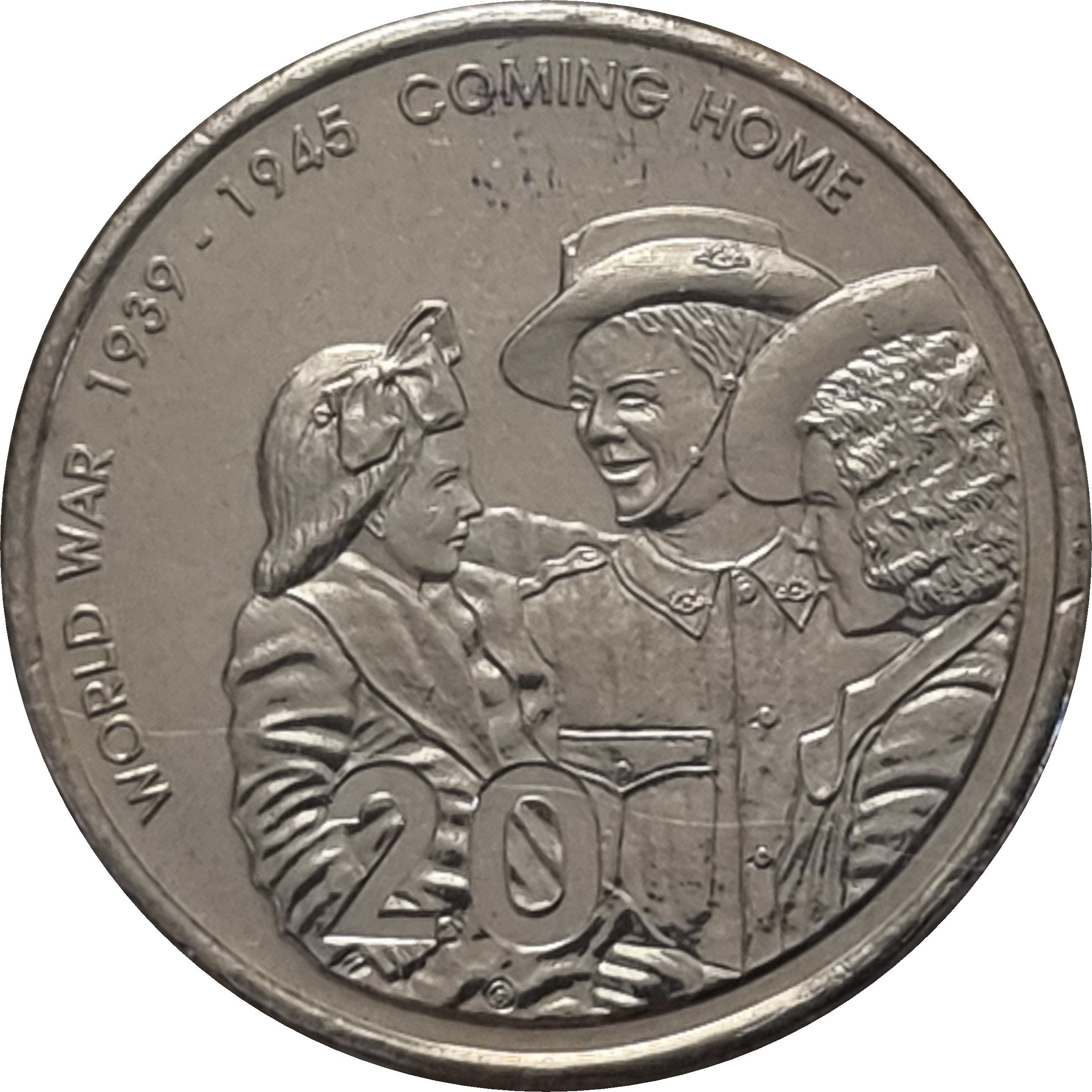 Назва: 20 центів — Єлизавета II (4-й портрет — Повернення додому — Кінець Другої світової війни)