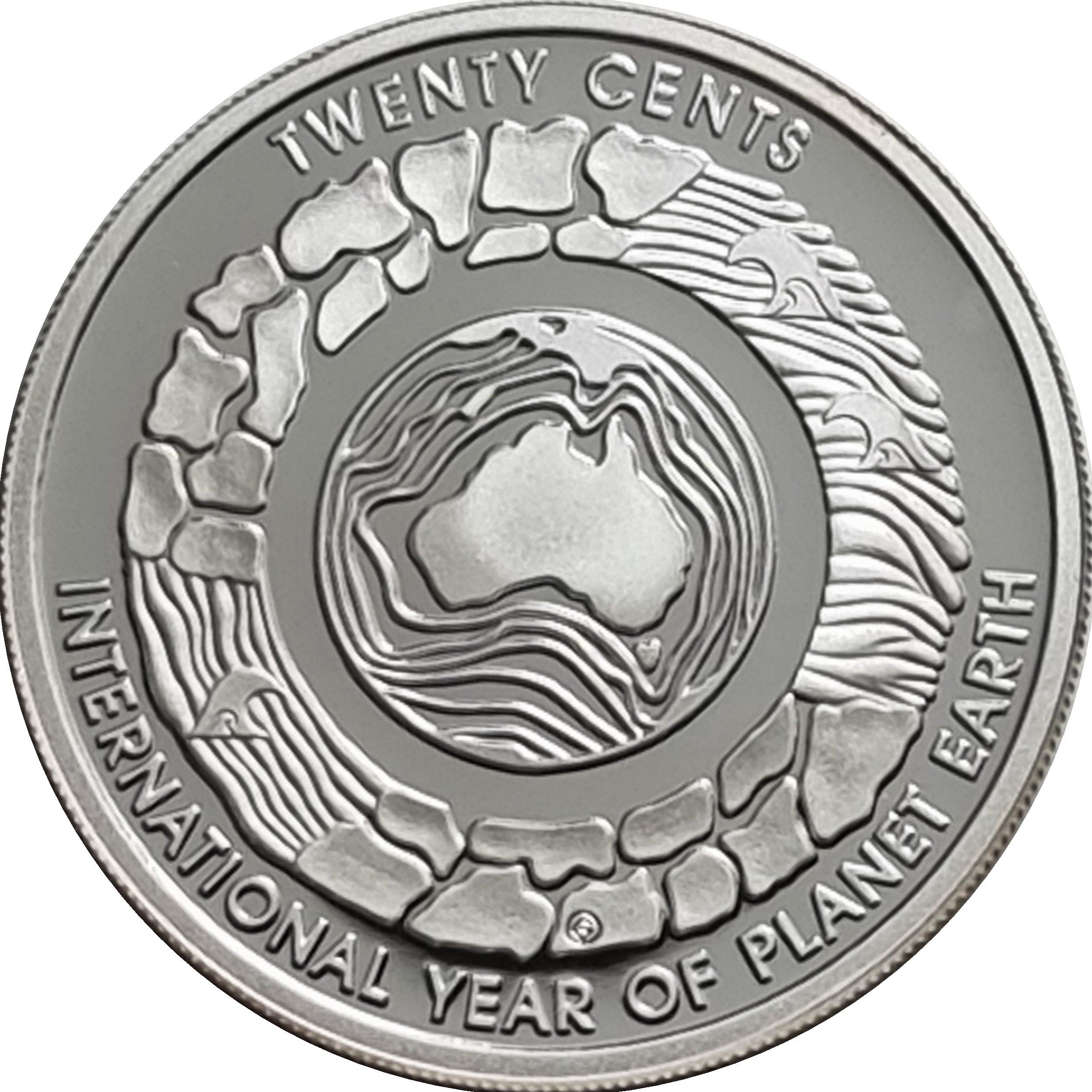 20 центів — Єлизавета II (4-й портрет — Міжнародний рік планети Земля — срібна монета високої якості)
