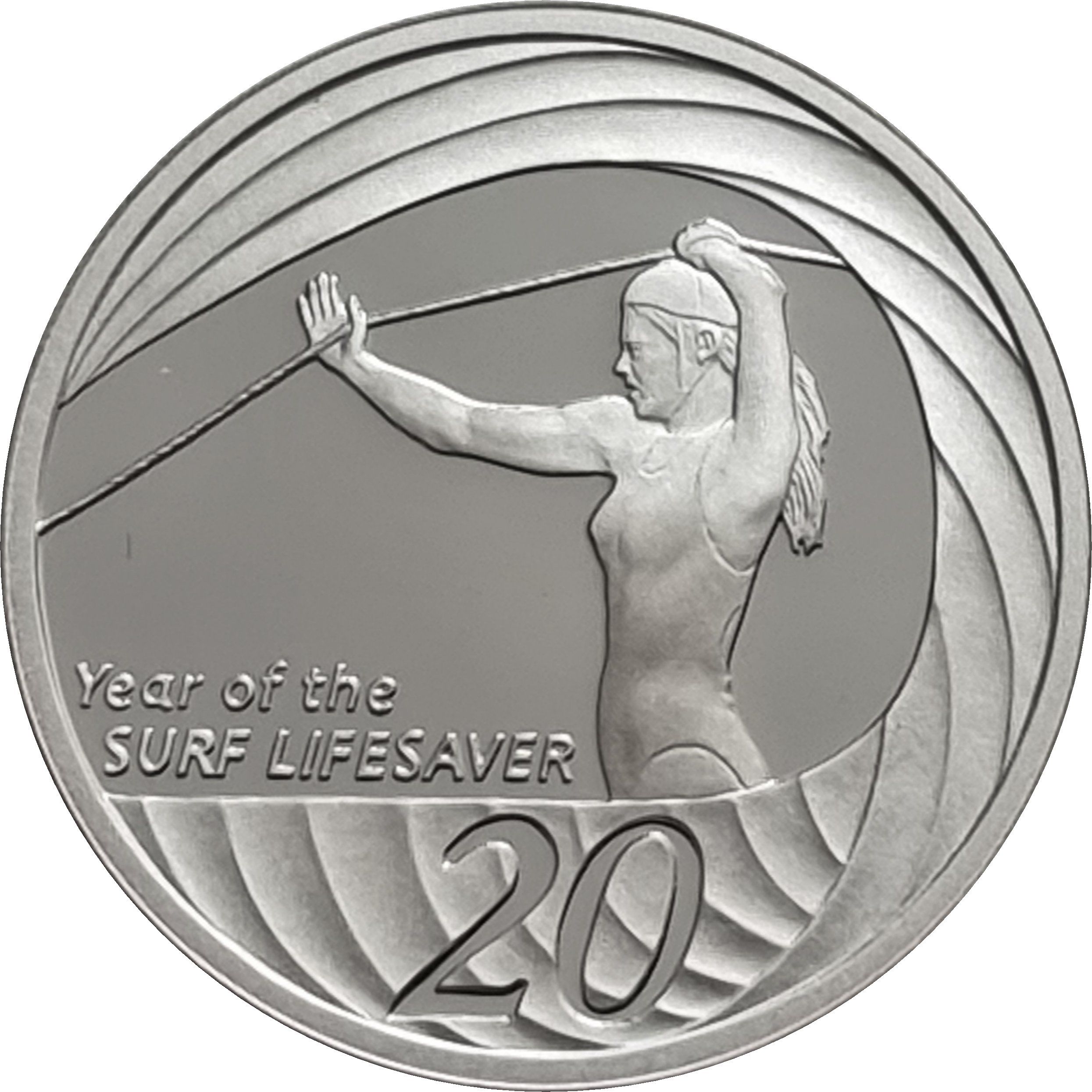 Назва: 20 центів — Єлизавета II (4-й портрет — рятувальник на воді — срібна монета)