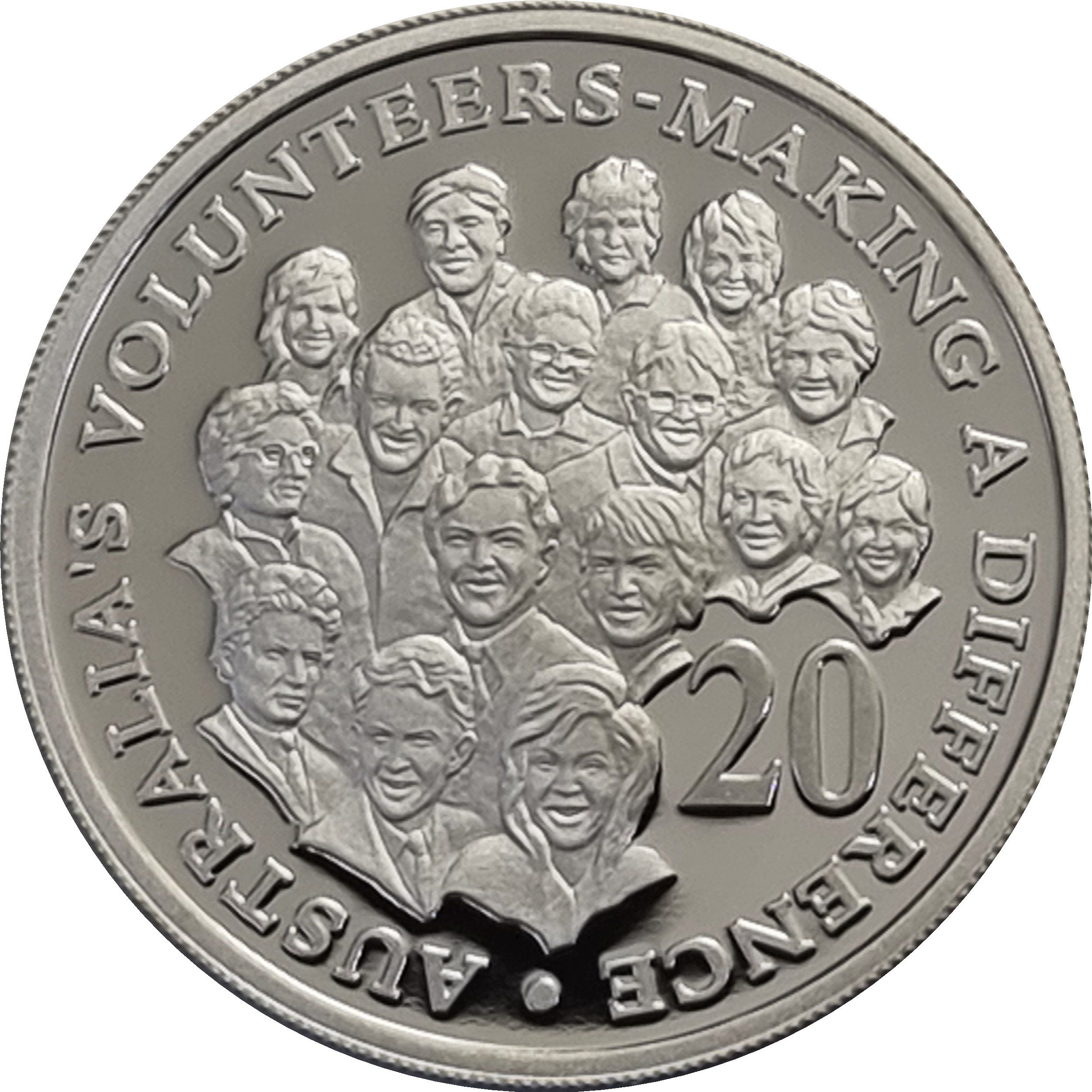 Назва: 20 центів — Єлизавета II (4-й портрет — Волонтери — Срібна монета високої якості)
