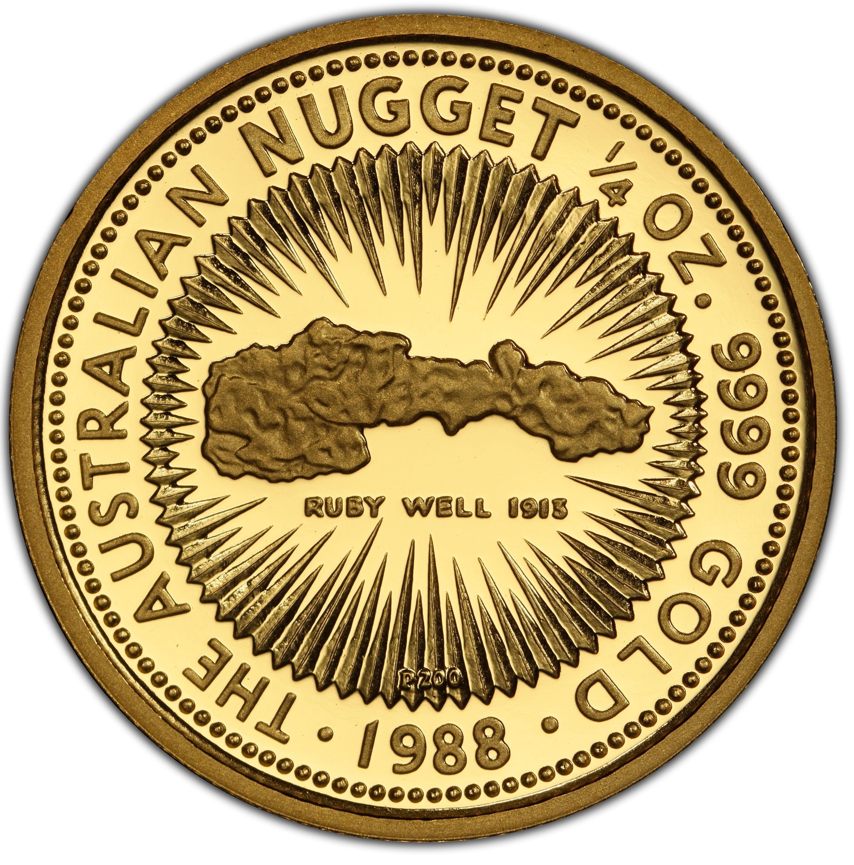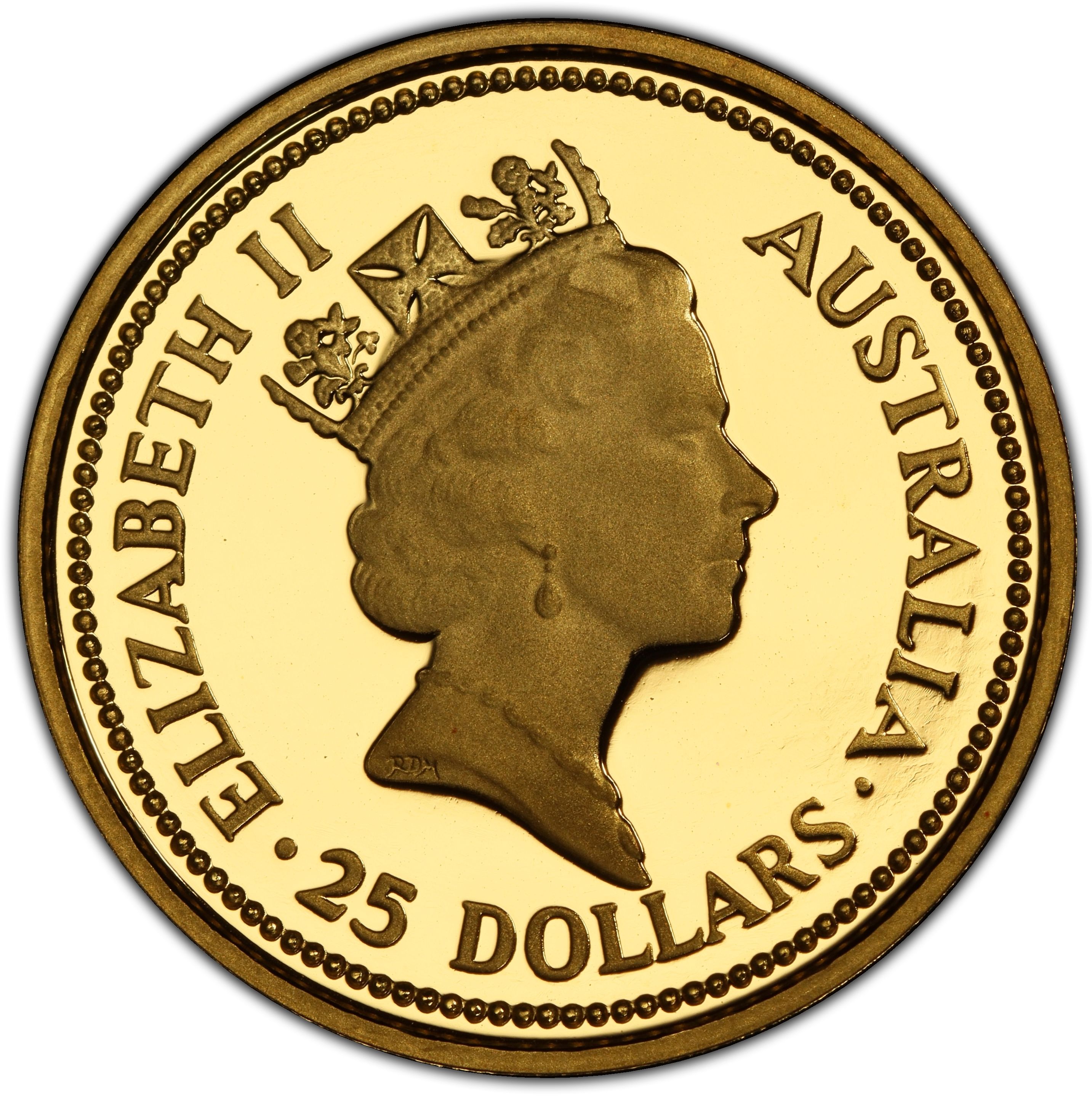 25 доларів — Єлизавета II (3-й портрет — золотий самородок — рубінова криниця — монета з дорогоцінного металу) 1988 – 1988 Австралія