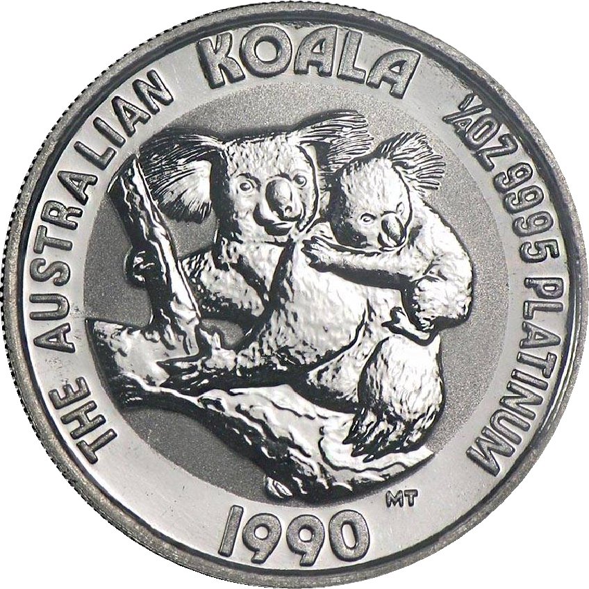 25 доларів — Єлизавета II (3-й портрет — коала — платина) 1989 – 1990 Австралія