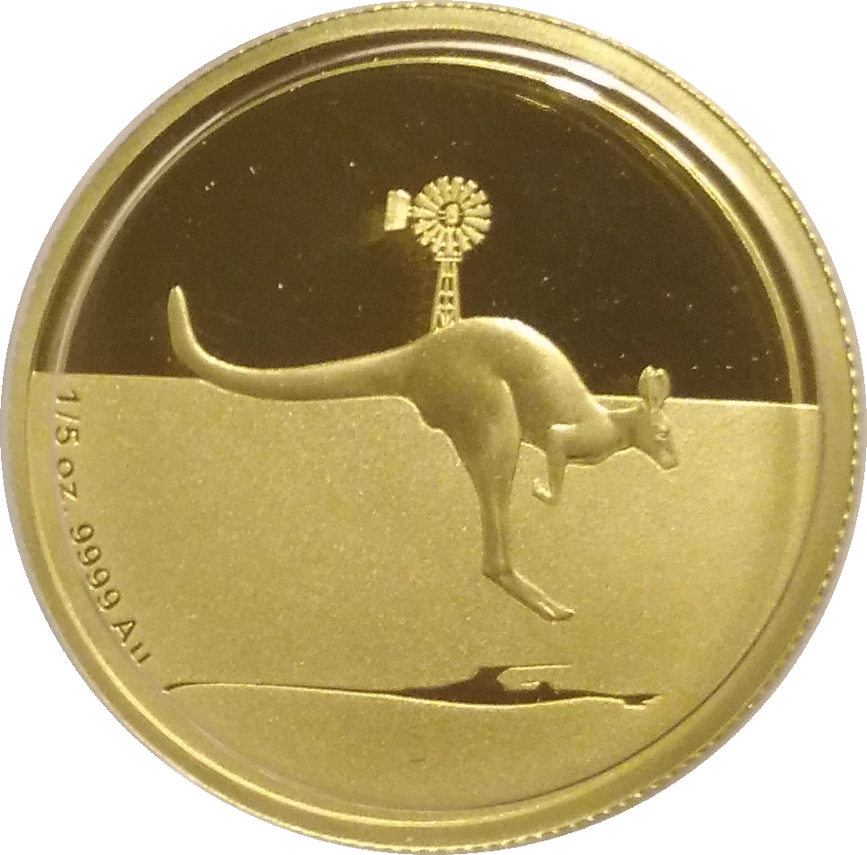 Назва: 25 доларів — Єлизавета II (4-й портрет — кенгуру, вітряк у центрі — золота монета)