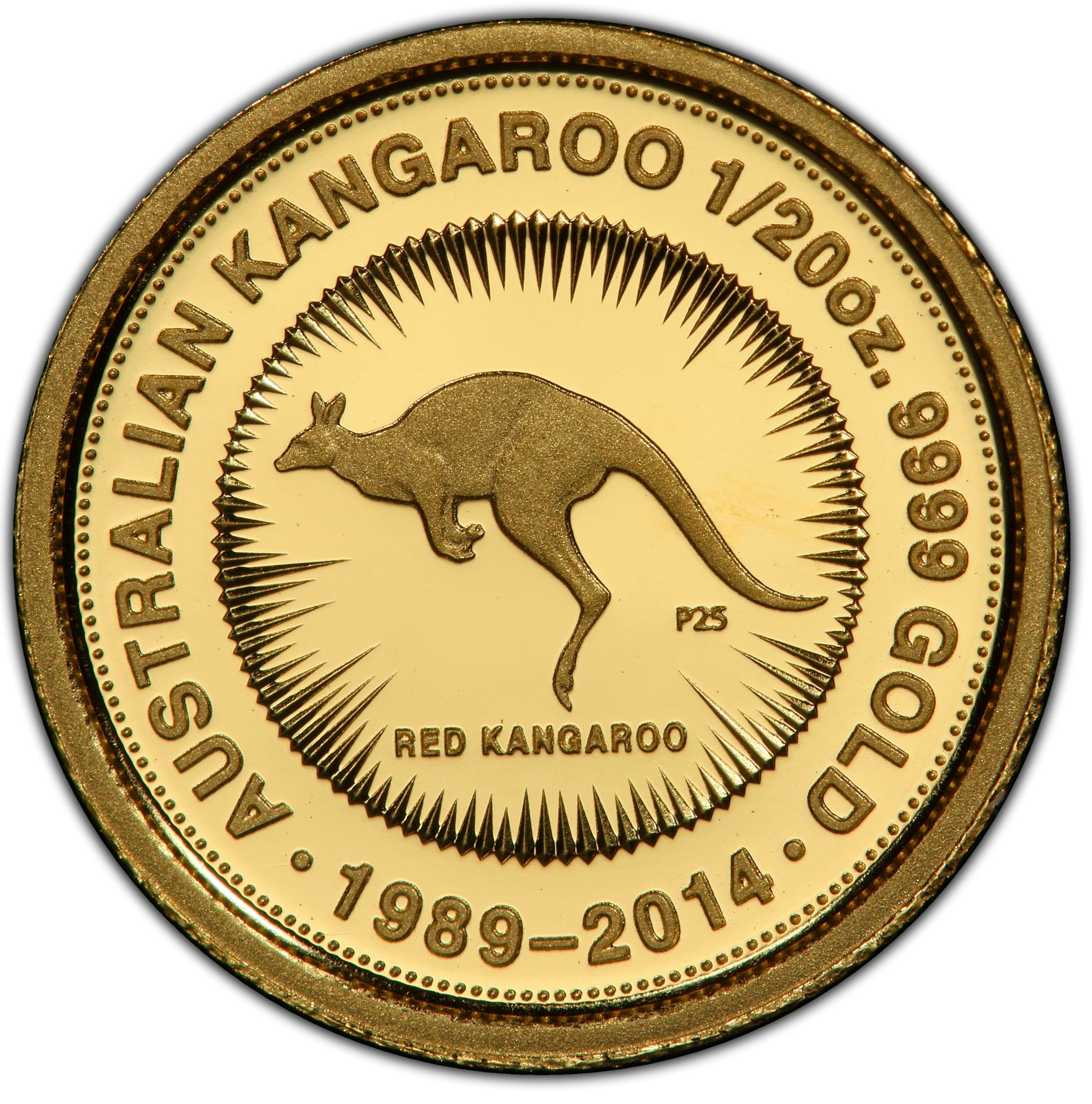 Назва: 5 доларів — Єлизавета II (4-й портрет — Червоний кенгуру — 25-та річниця, золота монета)