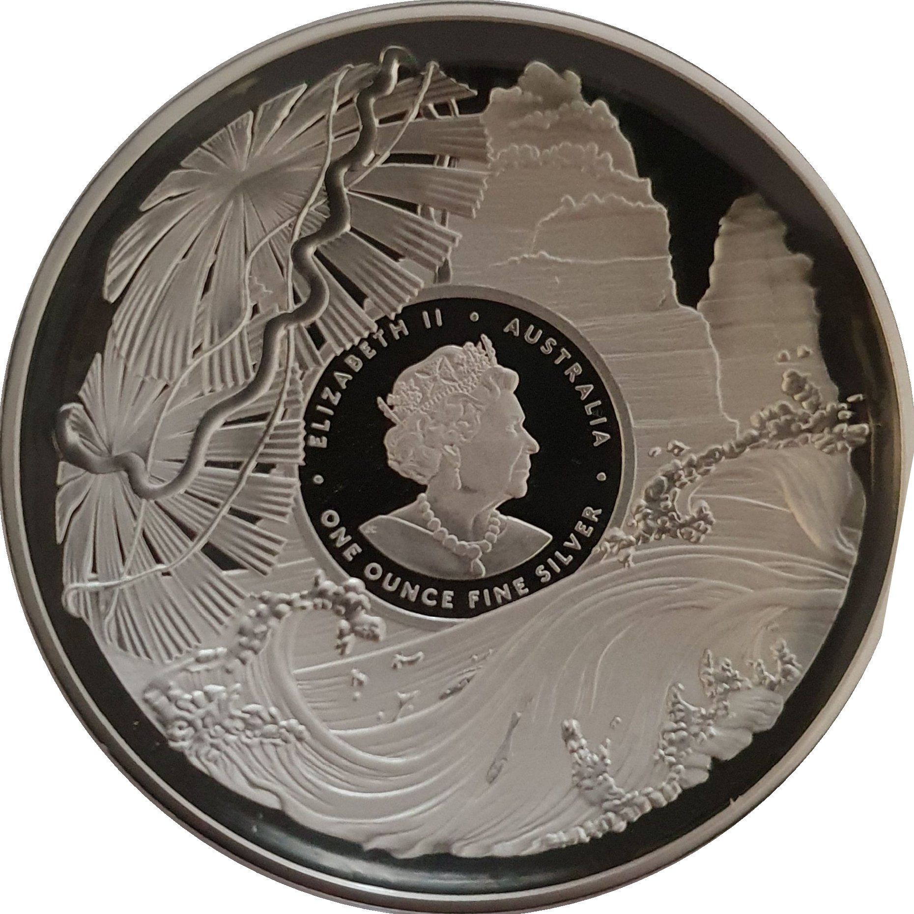 Назва: 5 доларів — Єлизавета II (6-й портрет — «Краса, багатство і рідкість»; тропічний ліс Дейнтрі)