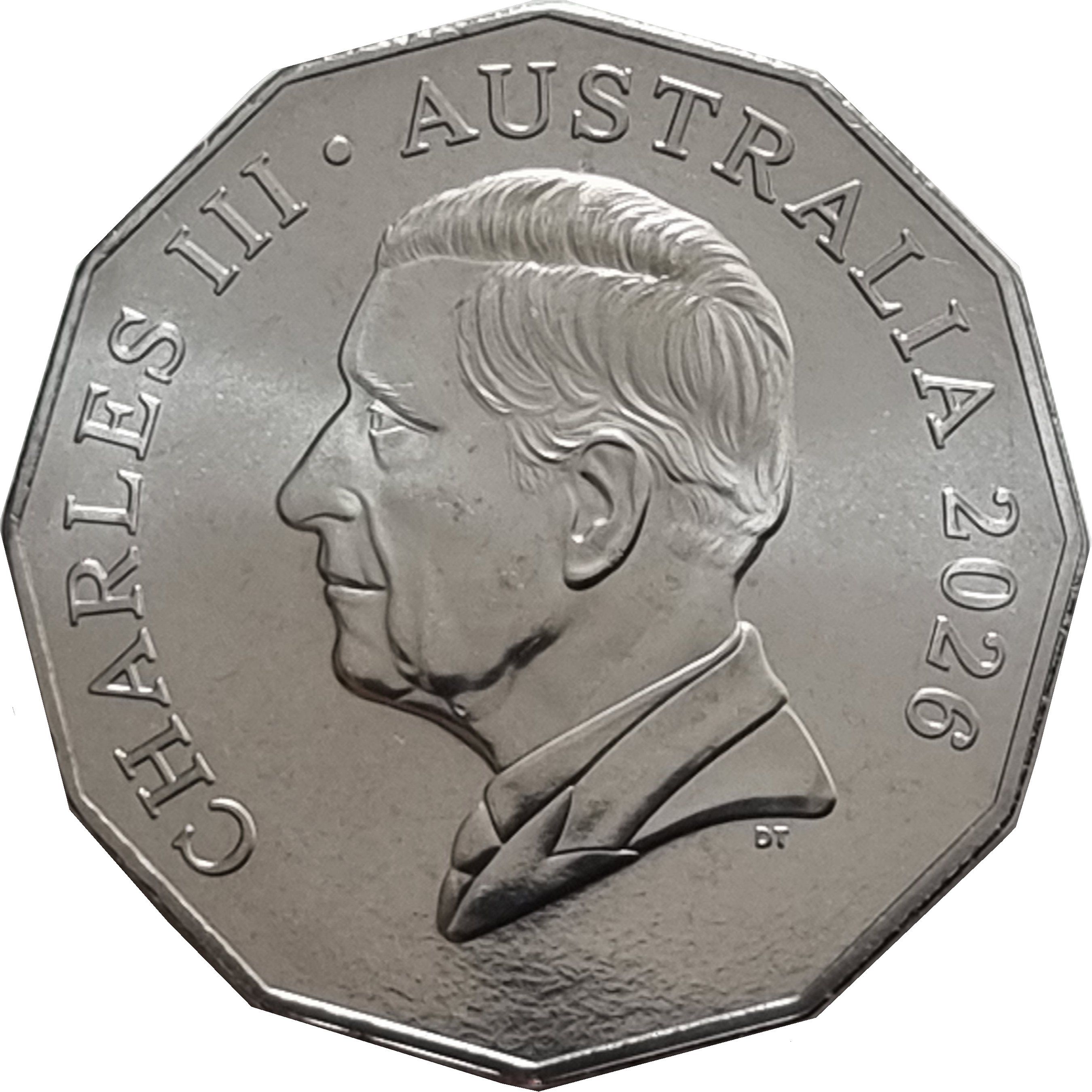 50 центів — Карл III (1-й портрет — 60 років десяткової валюти)