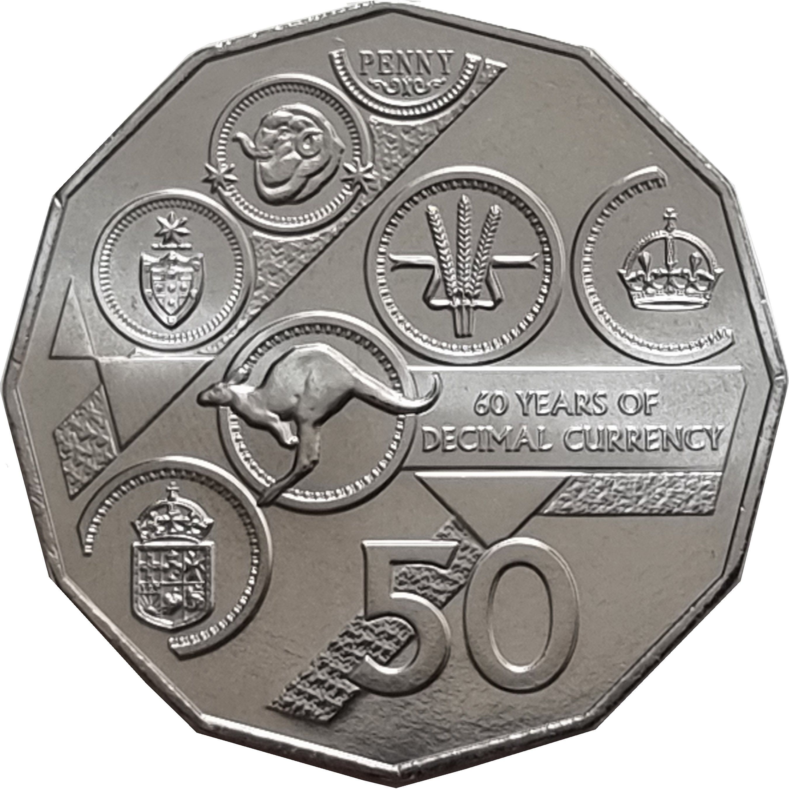 Назва: 50 центів — Карл III (1-й портрет — 60 років десяткової валюти)