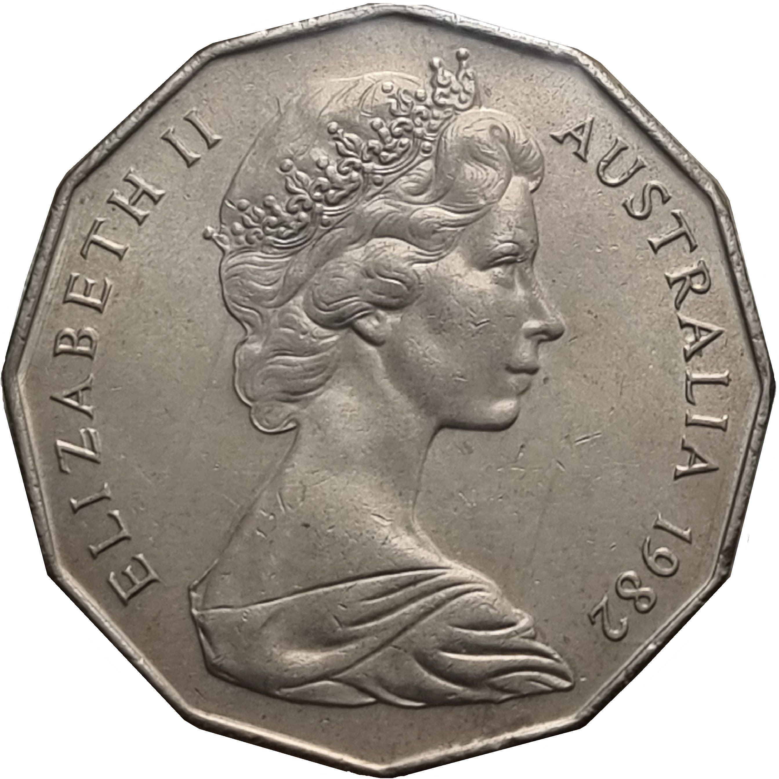 50 центів — Єлизавета II (2-й портрет — Ігри Співдружності в Брісбені) 1982 – 1982 Австралія