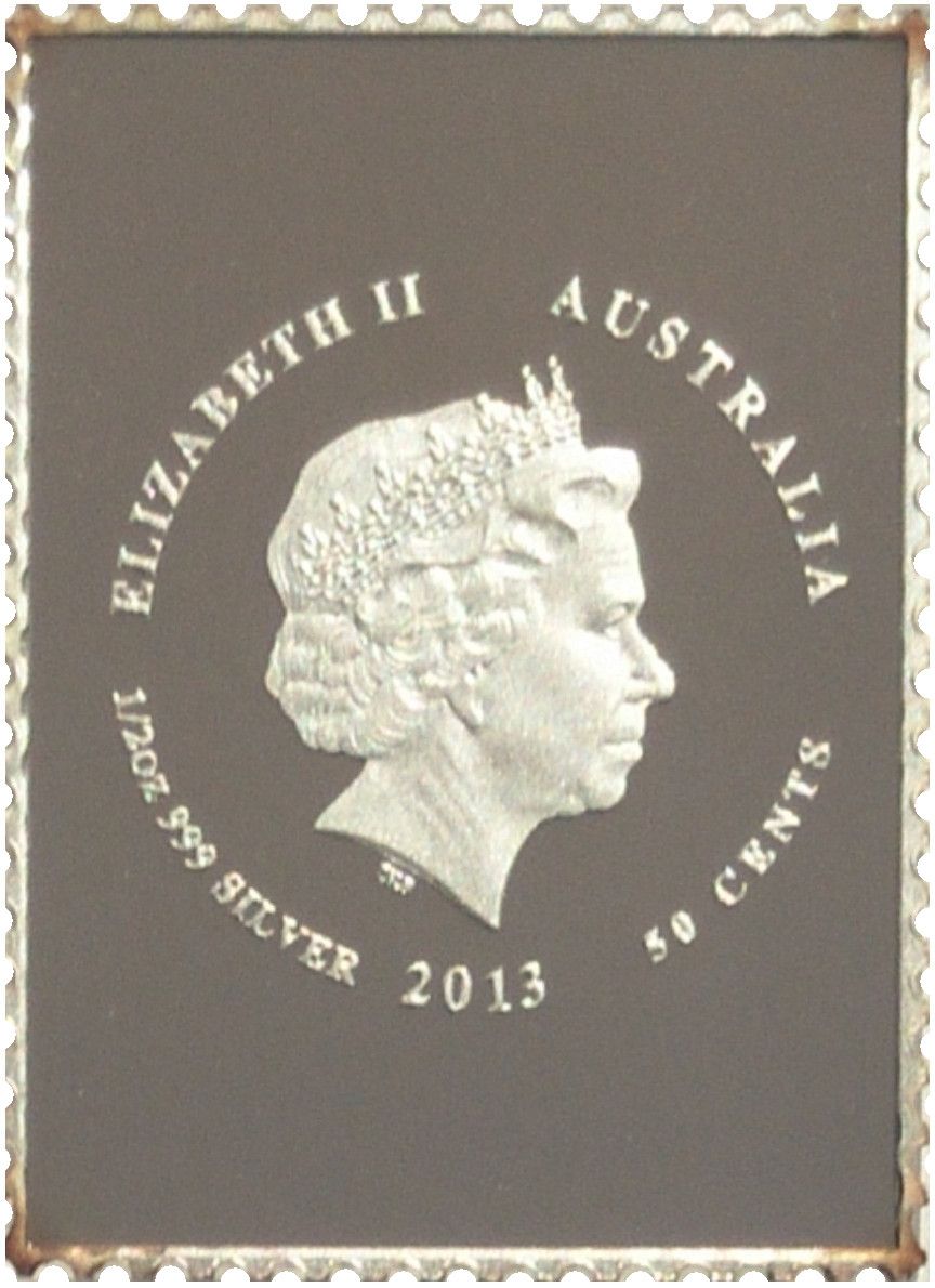 50 центів — Єлизавета II (4-й портрет — кенгуру та карта — у формі поштової марки)
