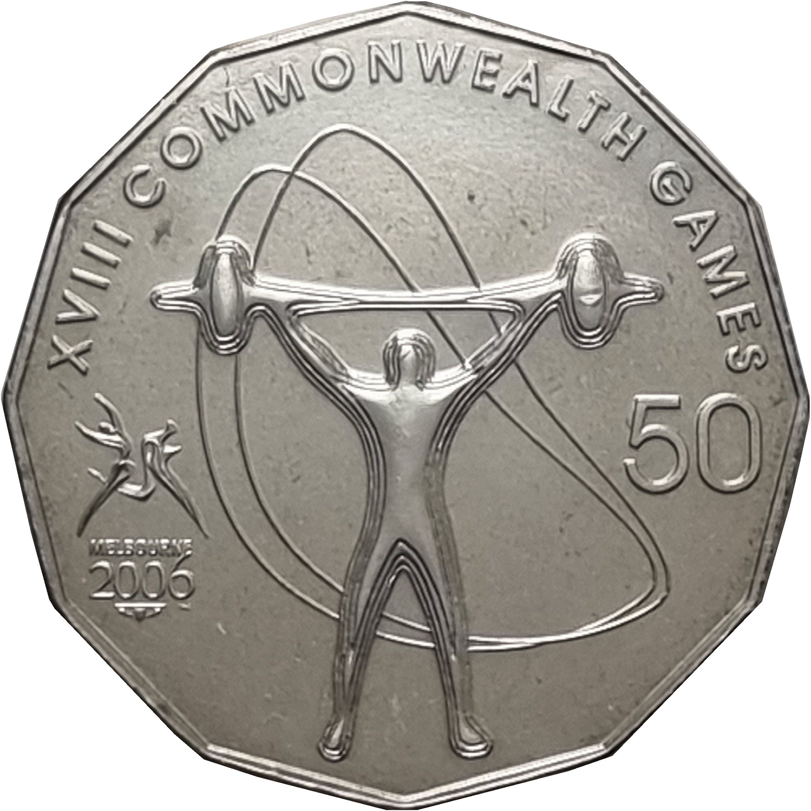 50 центів — Єлизавета II (4-й портрет — XVIII Ігри Співдружності з важкої атлетики)