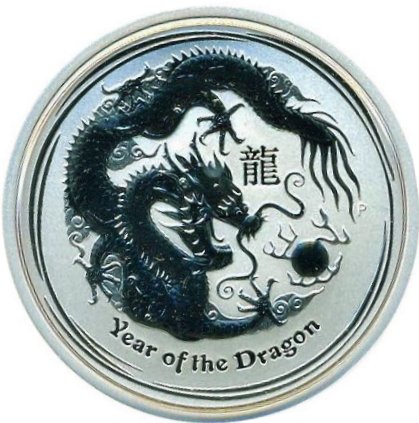 Назва: 50 центів — Єлизавета II (4-й портрет — Рік Дракона — Срібна монета)