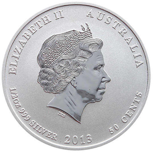 Назва: 50 центів — Єлизавета II (4-й портрет — Рік Змії — Срібна монета)