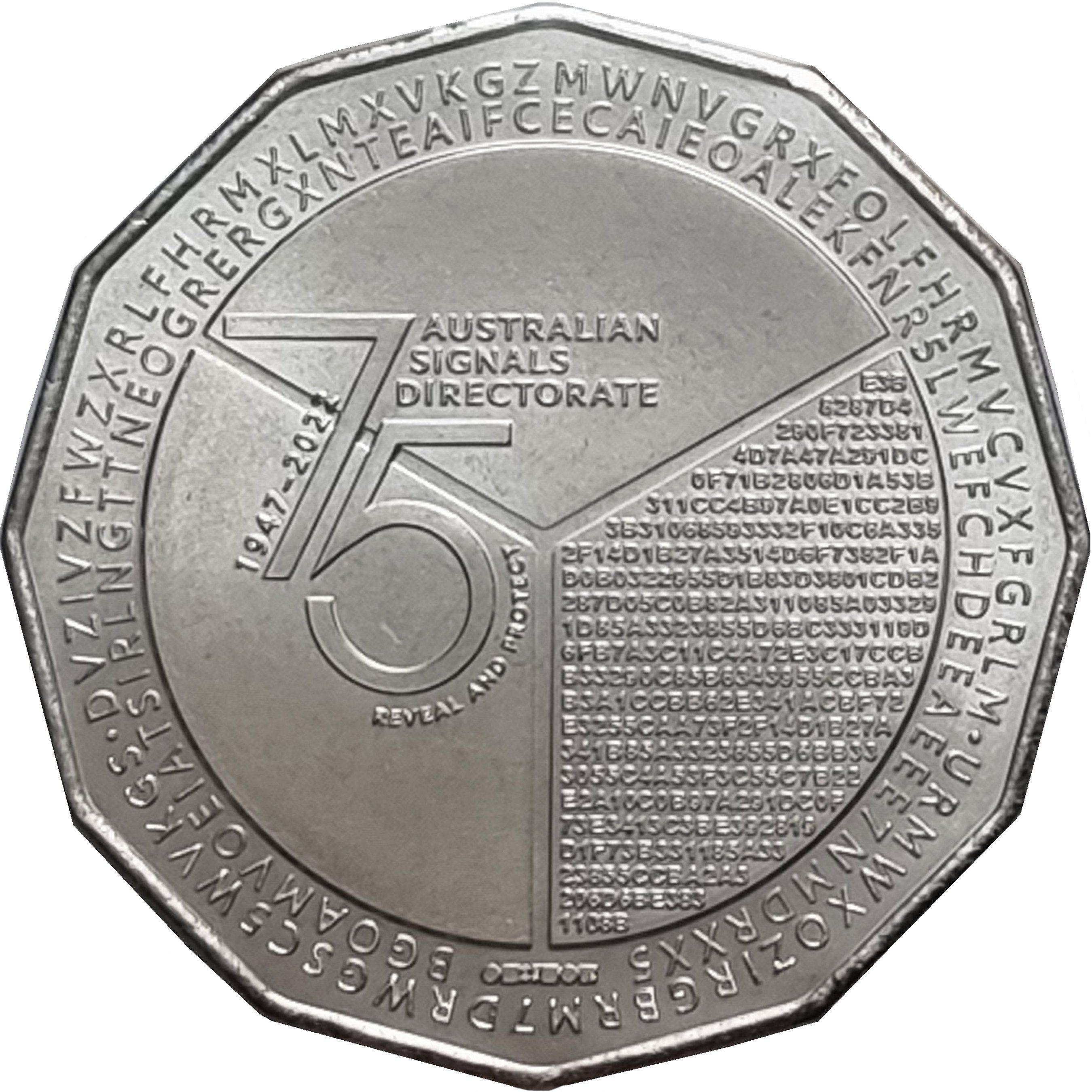 50 центів — Єлизавета II (6-й портрет — 75-та річниця Австралійського управління зв'язку) 2022 – 2022 Австралія