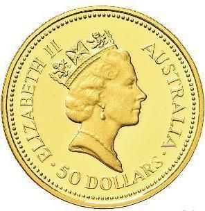 Назва: 50 доларів — Єлизавета II (3-й портрет — австралійський самородок — золота монета)