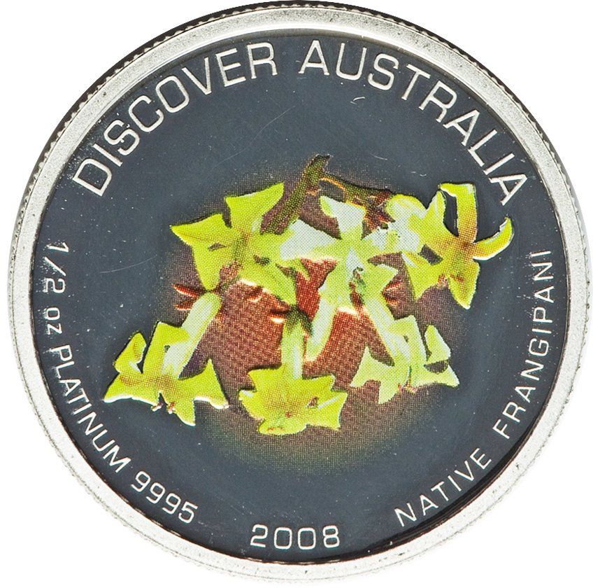 Назва: 50 доларів — Єлизавета II (4-й портрет — рідний франжипані — платинова проба)