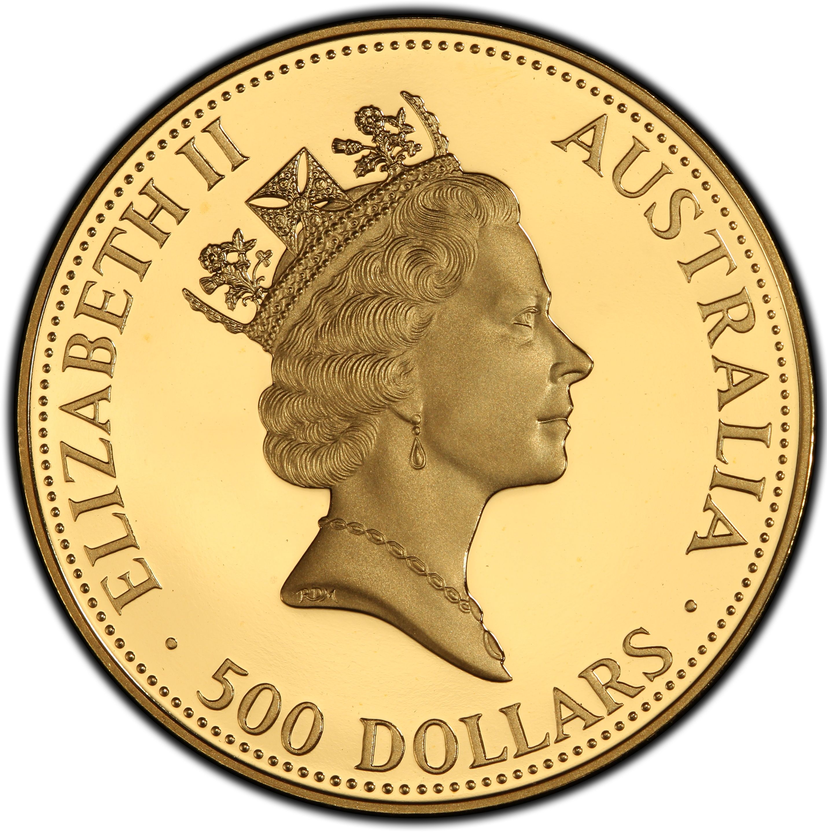 500 доларів — Єлизавета II (3-й портрет — австралійський самородок — золота монета) 1991 – 1991 Австралія