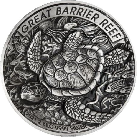 Назва: 60 доларів — Єлизавета II (6-й портрет — Великий Бар'єрний риф — срібло з ефектом старовини)