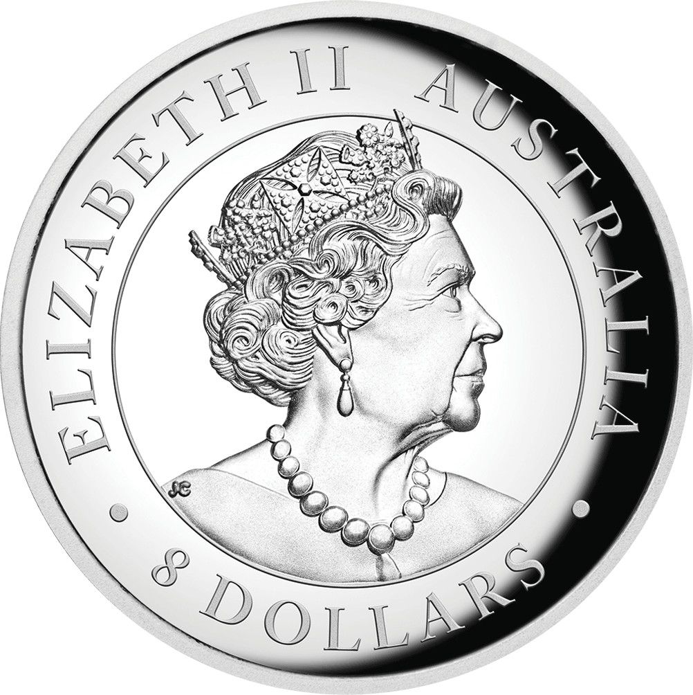 8 доларів — Єлизавета II (6-й портрет — Коала — Срібна проба — Високий рельєф)