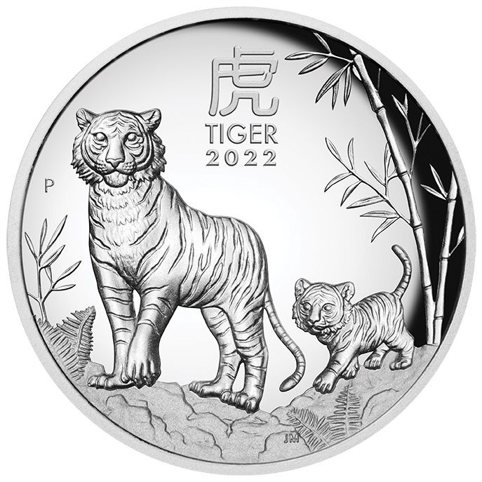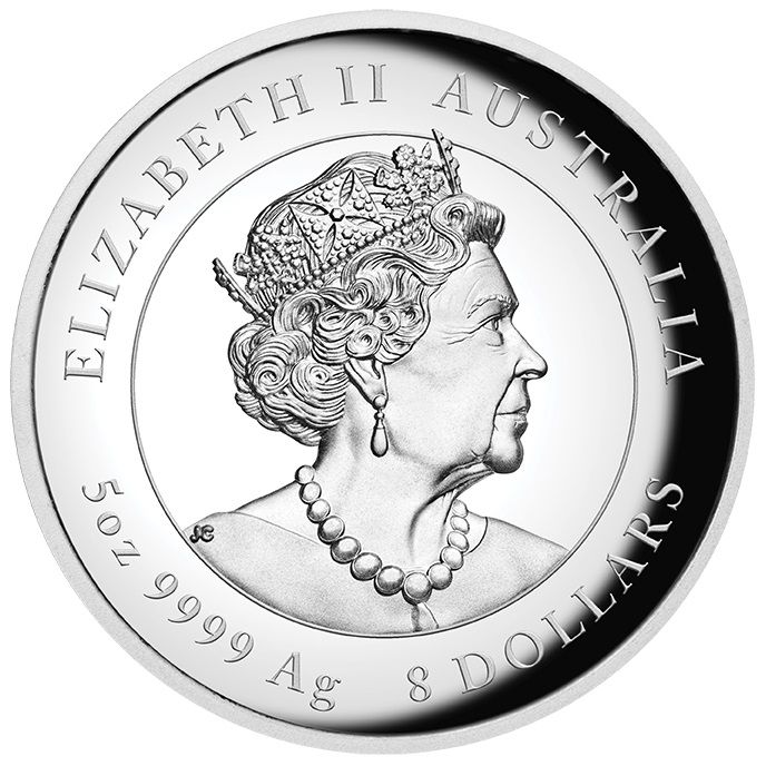 8 доларів — Єлизавета II (6-й портрет — Рік Тигра; срібна монета з високим рельєфом) 2022 – 2022 Австралія