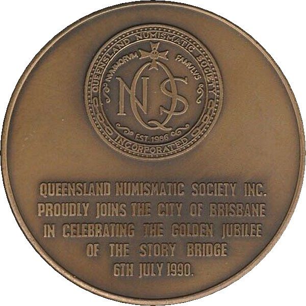 Медаль — 50-та річниця мосту Стори-Брідж у Брісбені (Квінслендське нумізматичне товариство) 1990 – 1990 Австралія