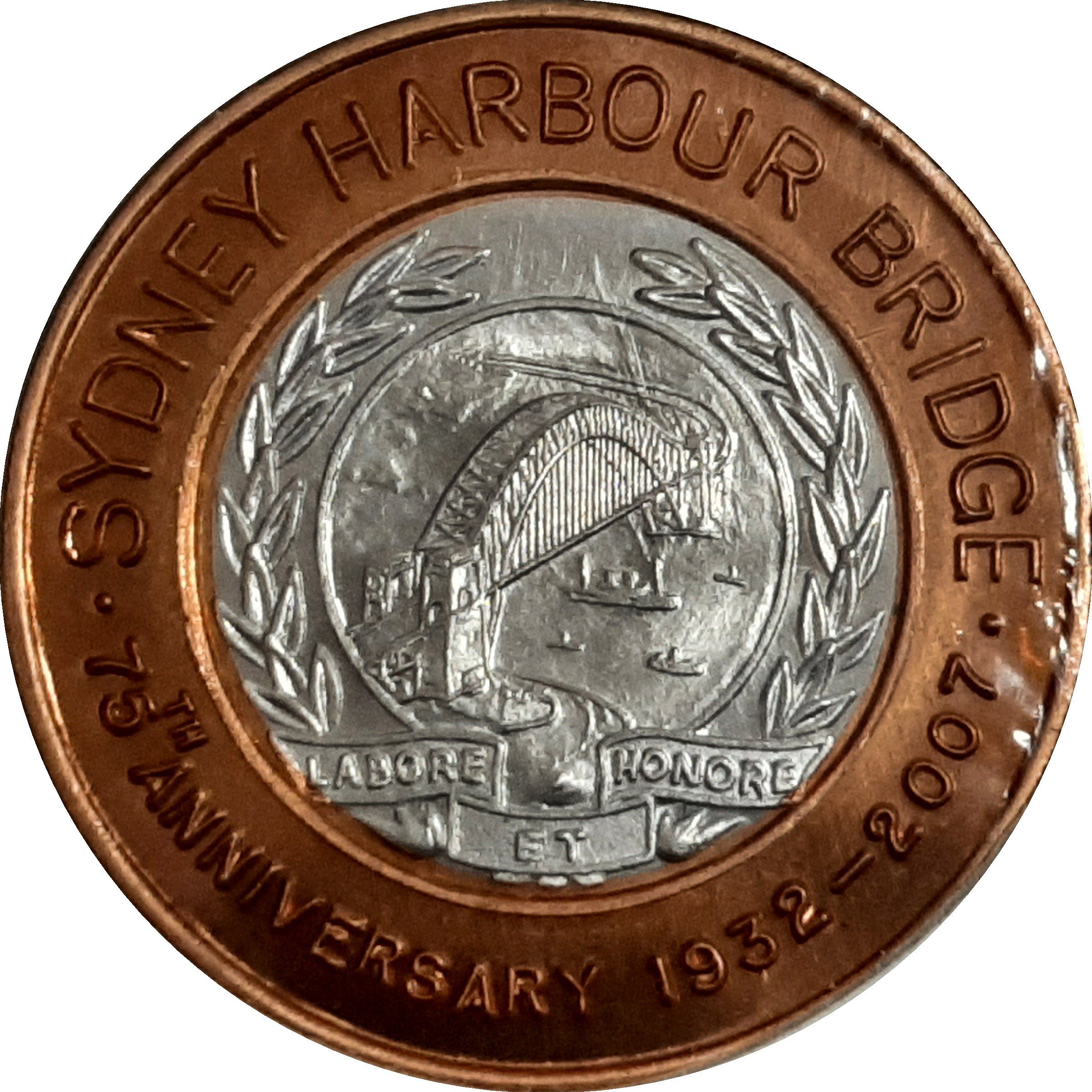 Опис: У центральному колі зображено міст Харбор-Брідж у Сіднеї, оточений вінком. Текст розміщений на зовнішньому кільці.