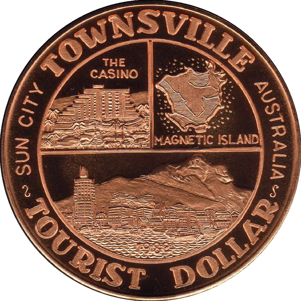 Медаль — Туристичний долар (Таунсвілл — ворота до тропіків; туристичний сувенір) 1982 – 1982 Австралія