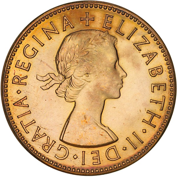 ½ пенні — Єлизавета II (1-й портрет; без «F:D:») 1953 – 1955 Австралія