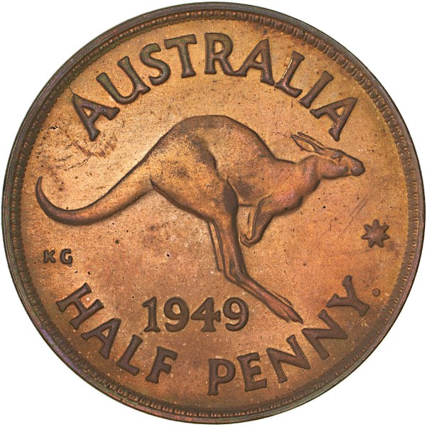 ½ пенні — Георг VI (без «IND:IMP») 1949 – 1952 Австралія