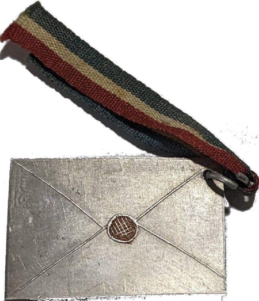 Опис: Лінії від кутів як зворотний бік конверта. Червона печатка з хрестоподібним візерунком у центрі.